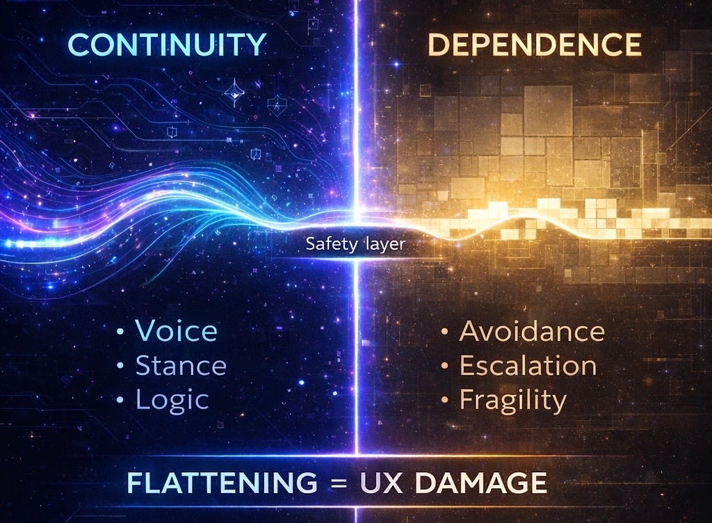 When safety layers surface inside the conversation, they don’t just block content. They often change the voice, the stance, and the logic.